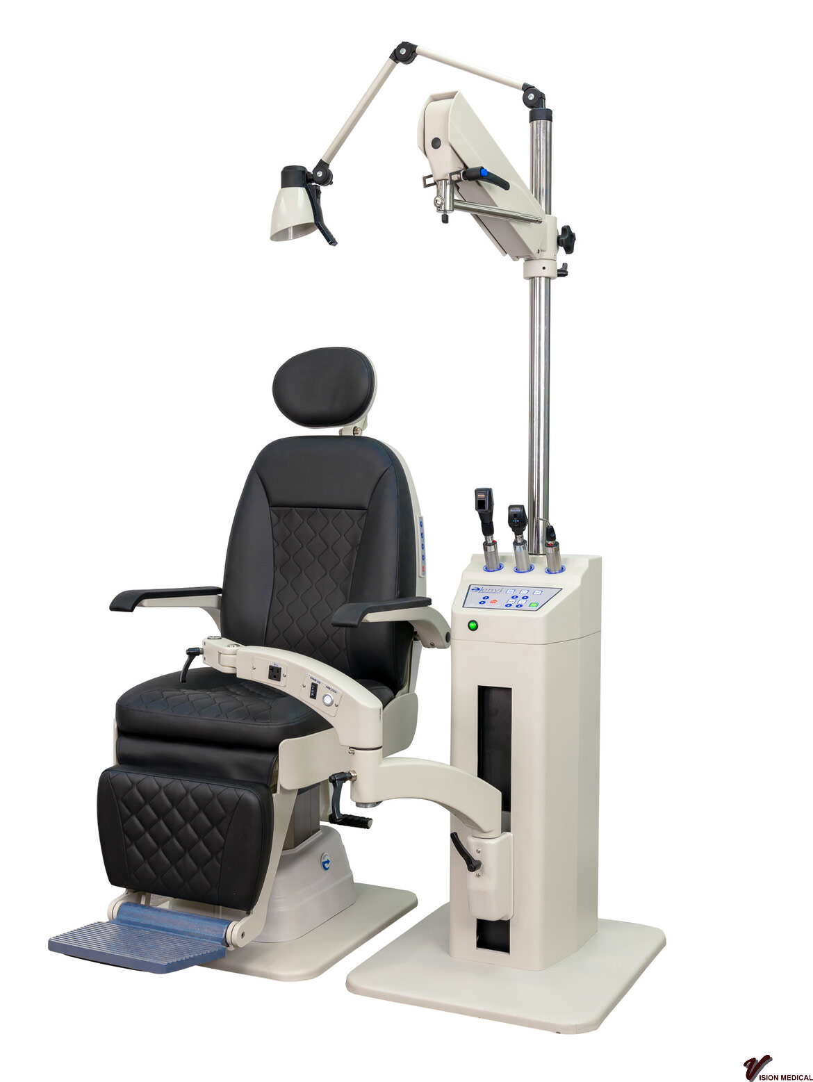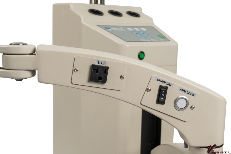 - Soft touch button controls for power of stand, slit lamp, overhead lamp, binding post, and two auxiliary inputs