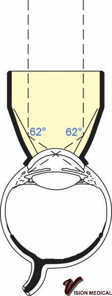 Four 62° mirrors allow complete observation of the angle with little lens rotation. Small diameter flange is convenient for eyes with small palpebral fissures. This model has the large size anterior holding ring. Methylcellulose not required for most patients.