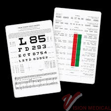 This two-sided contemporary reading card was designed by James Lebensohn, MD, and provides a full range of near vision exercises including words, numbers, and OX symbols. Optotypes include 20/80, 20/400, 20/260, 20/200, 20/100, 20/65, 20/50, 20/40, 20/30, 20/25, and 20/20. Notation equivalents include decimal readings in English and metric, Jaeger, point size, and visual efficiency percentages. The Red/green bars are employed on 5 pt to 12 pt optotypes.