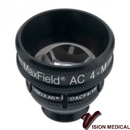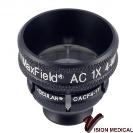Traditional and 1X magnification versions available. High Refractive Index glass provides total internal reflection even with fluid in contact with the mirrors. Total internal reflection means no light absorption or loss by a mirror coating resulting in a brighter, clearer image. High resolution image of the anterior chamber angle. Steam sterilizable. This model has the large holding ring.