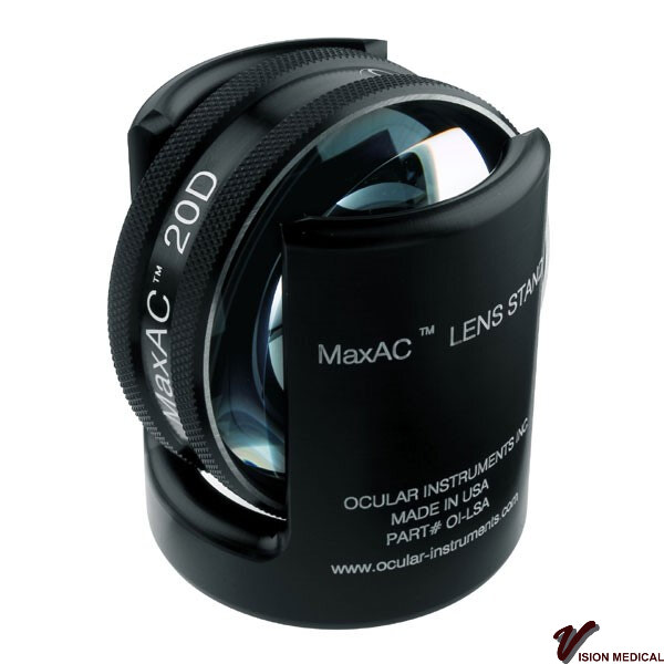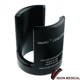 The lens stand minimizes water spots from the autoclave. Use during sterilization to hold the lens on edge.