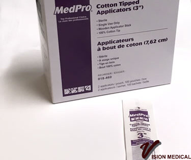 Cotton Tipped Applicators, Sterile, 3" Wooden Applicator, 2 per Pouch, 100 Pouches/ Box