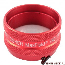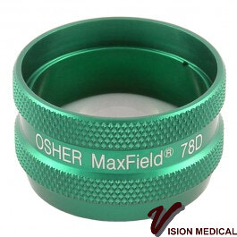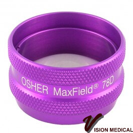 Formerly called the Osher Panfundus Lens. 78D high refractive index glass lens gives wider field than a regular 78. Very high resolution and wide field for slit lamp fundus examination. Unique design minimizes reflections. Works very well with surgical microscope. Available with red, blue, green, gold, purple, or traditional black holding ring. Open Product Data Sheet